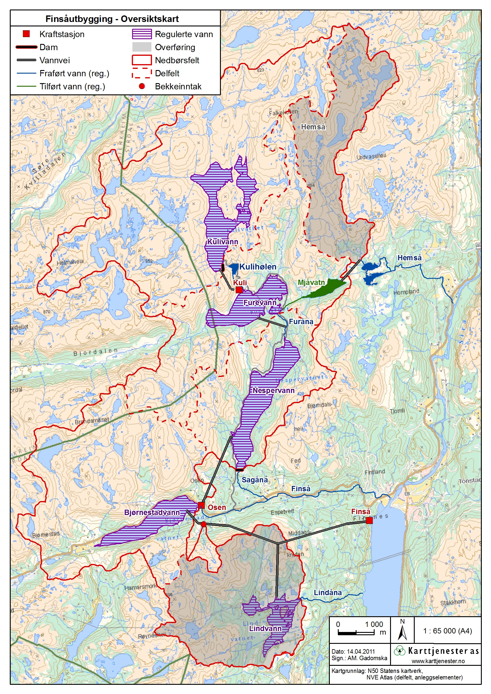 Oversiktskart for Finnsåutbygging, en del av kravspesifikasjon v/ vilkårsrevisjonen